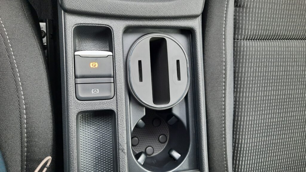 Středová konzola s držáky nápojů, žaluzií, držák multimédií a odkládací přihrádka za středovou konzolou